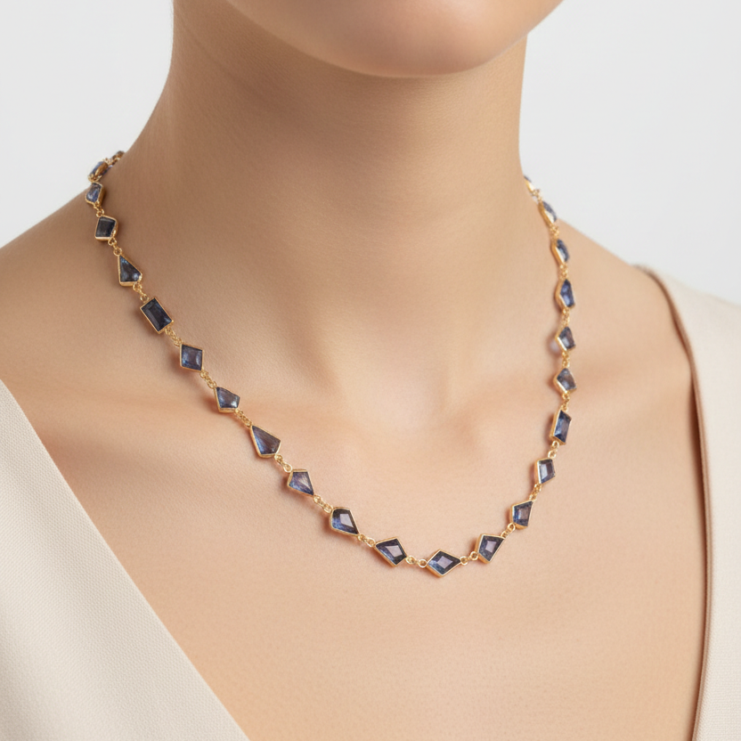 18K Yellow Gold Blue Sapphire Necklace for Women | Designer Fine Jewelry – Tresor