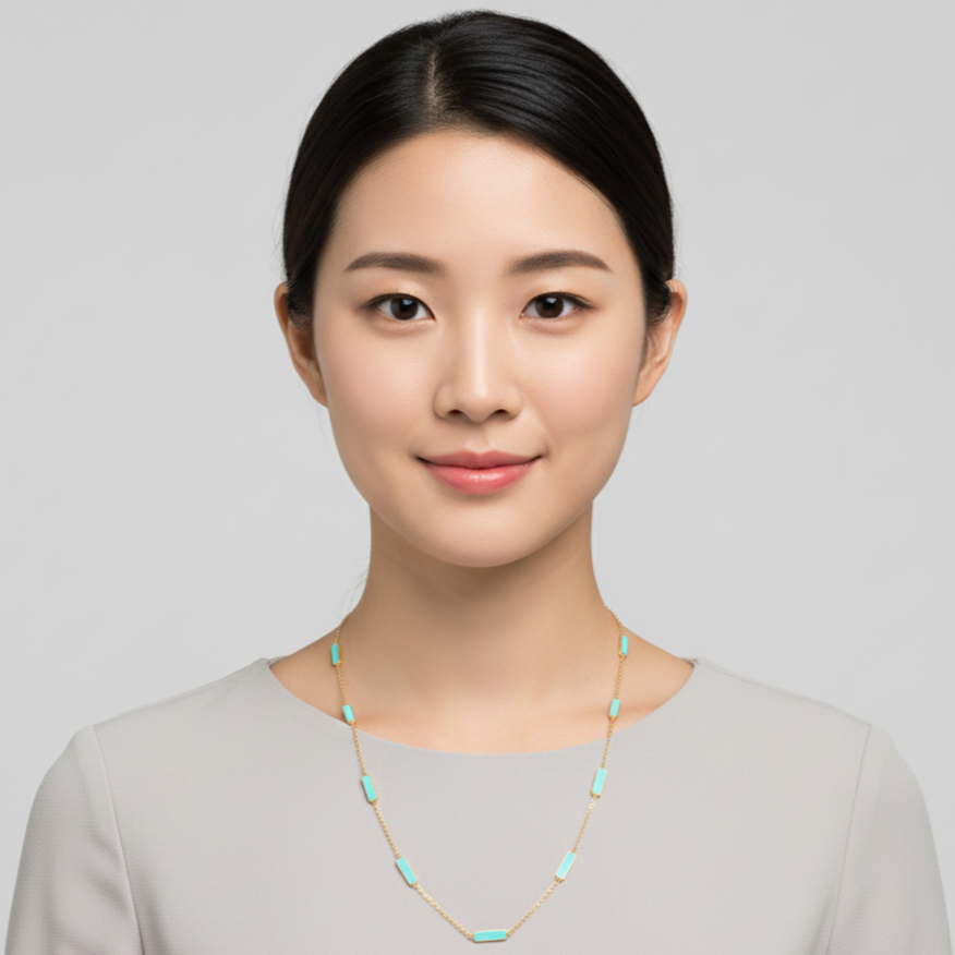 Each stone is hand-polished and bezel-set in radiant gold, highlighting the tranquil blue tones of natural turquoise — the December birthstone known for its timeless charm and soothing elegance. Designed for effortless versatility, this modern necklace transitions beautifully from daytime chic to evening refinement, making it a perfect choice for festive gatherings, elegant gifting, or everyday luxury.