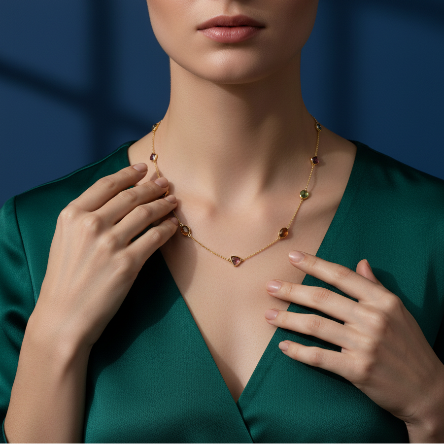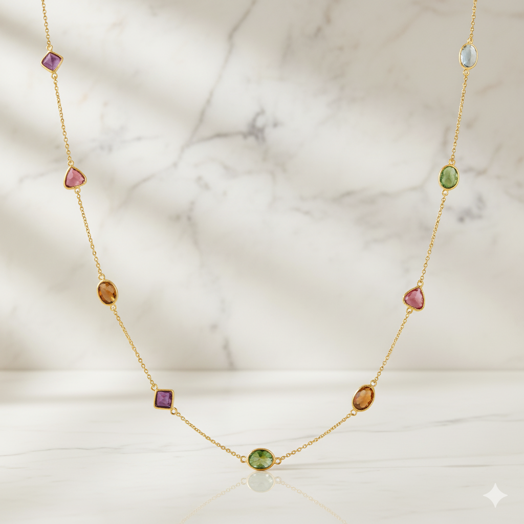 18K Gold Multicolor Gemstone Necklace – Fin Collection