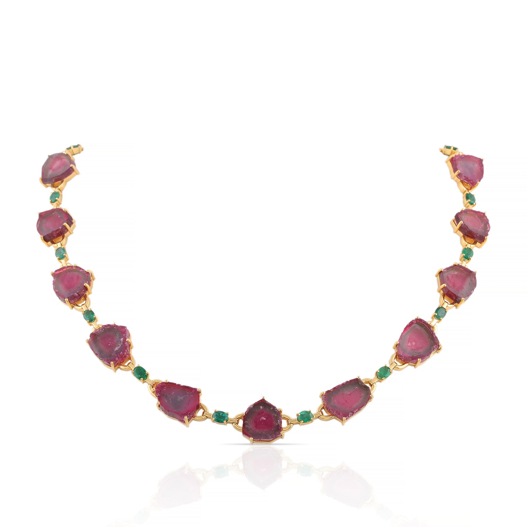 18K Gold Emerald & Watermelon Tourmaline Necklace – Modern Fine Jewelry | Tresor Collection