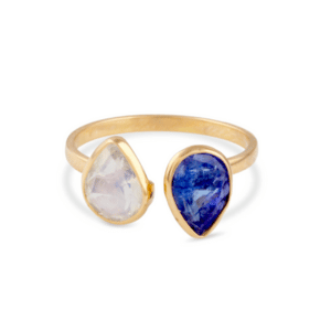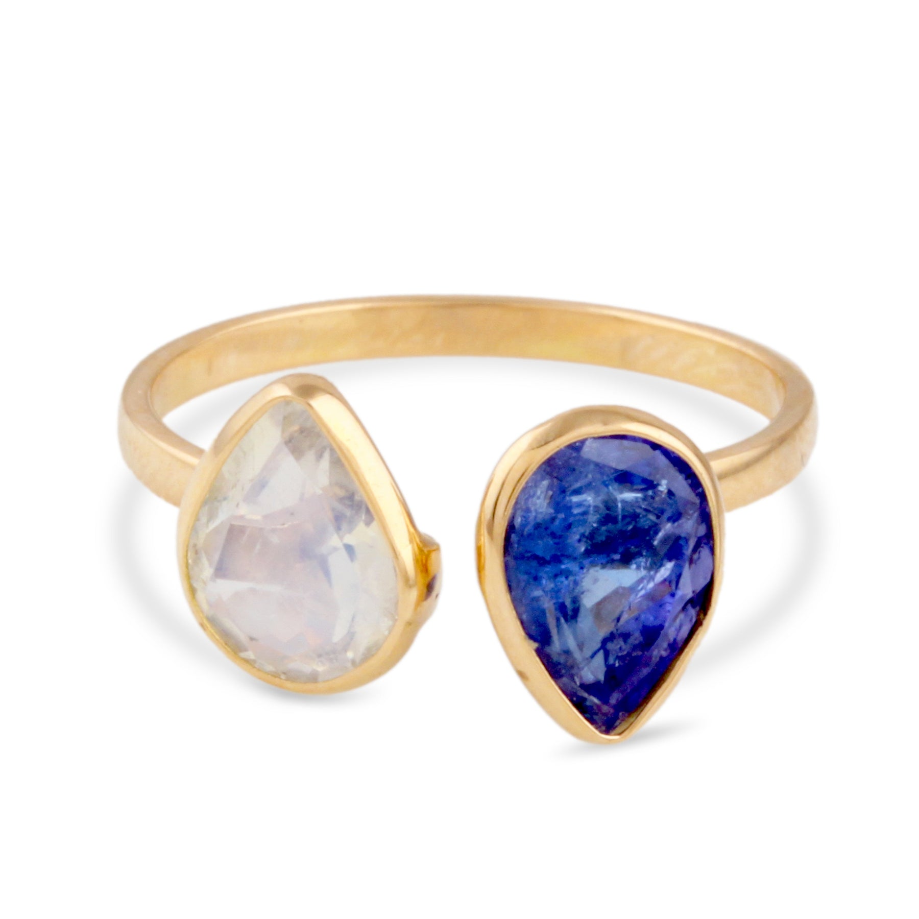 Tanzanite And Rainbow Moonstone Pear Shape Ring In 18K Yellow Gold