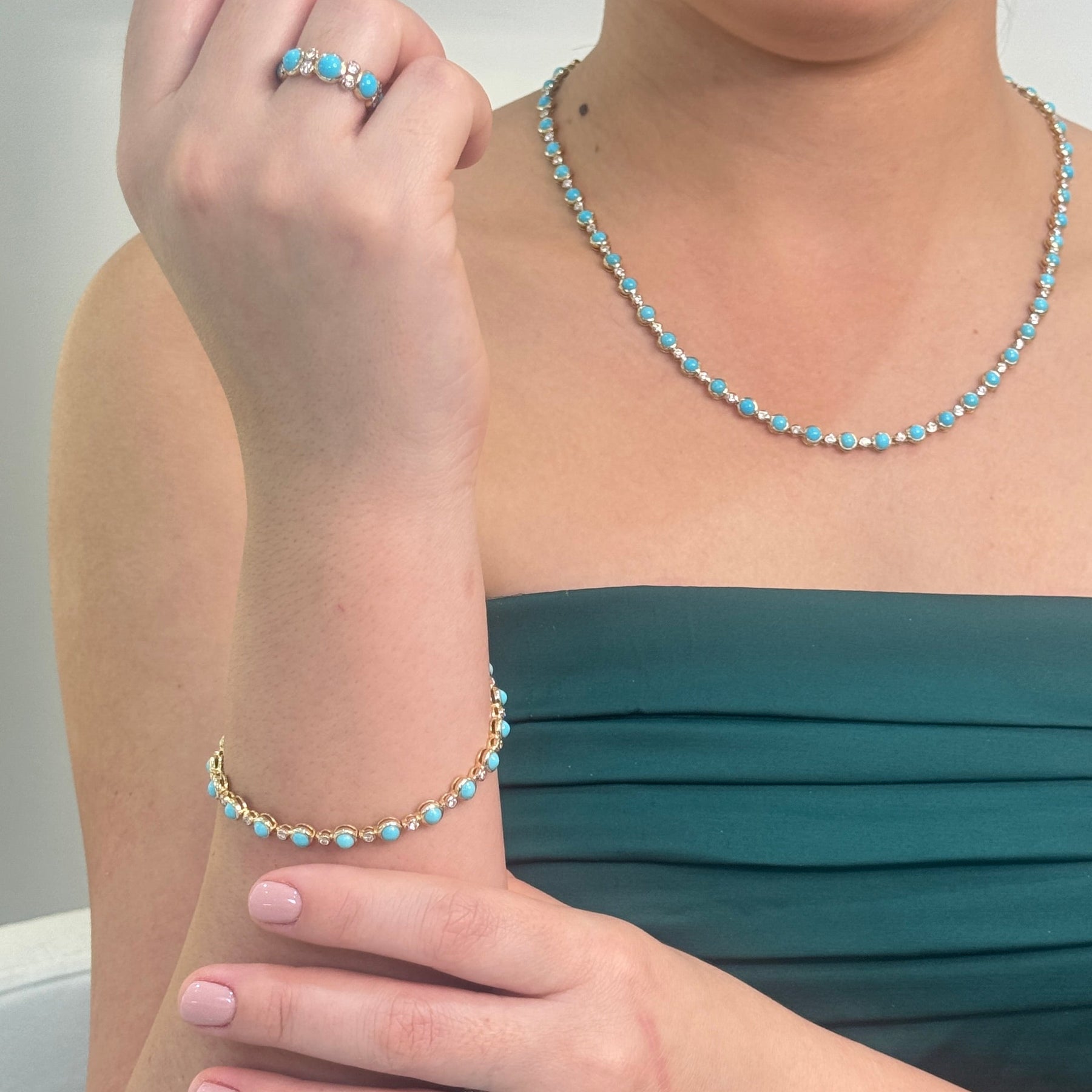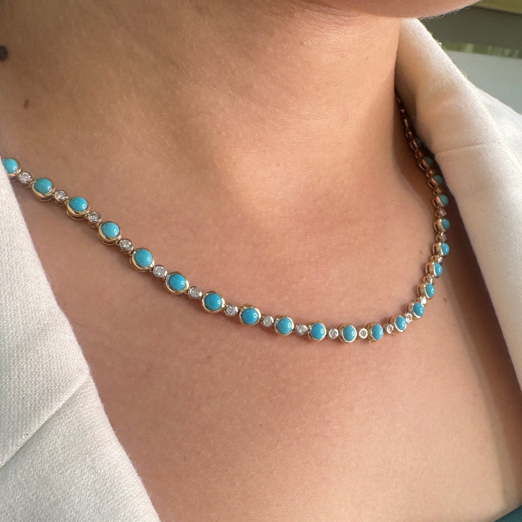 18K Yellow Gold Turquoise & Diamond Station Necklace | Tresor Collection